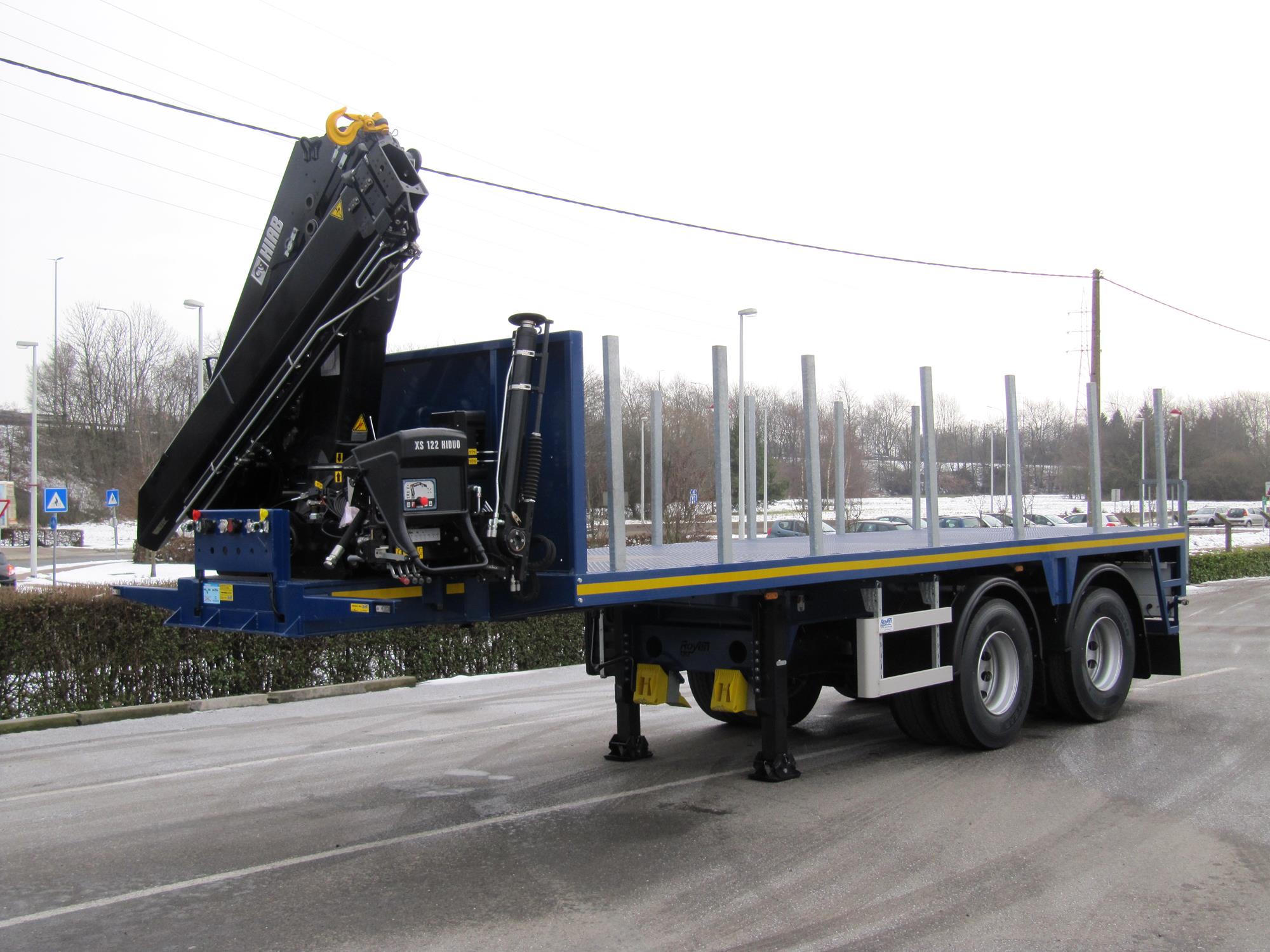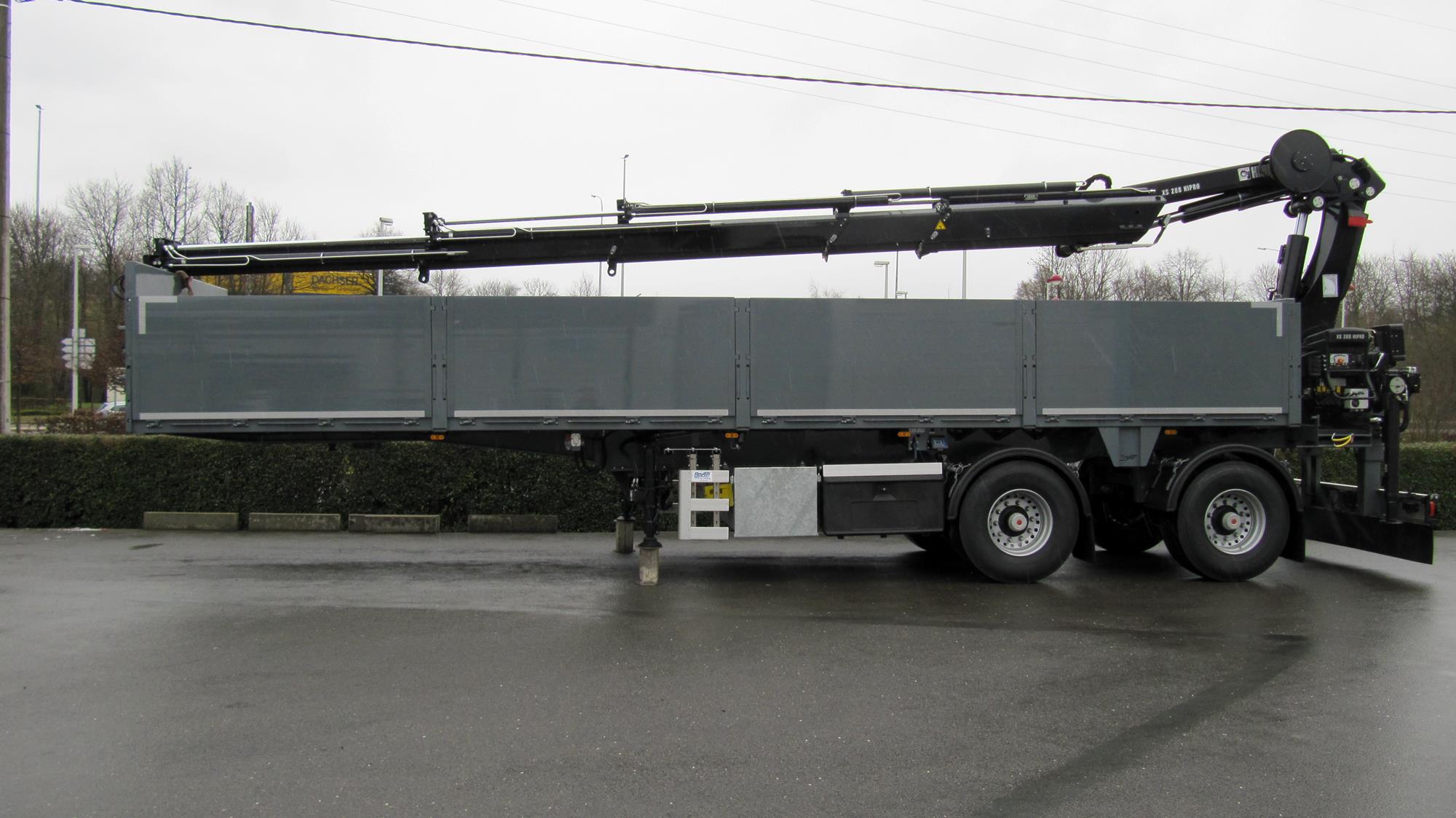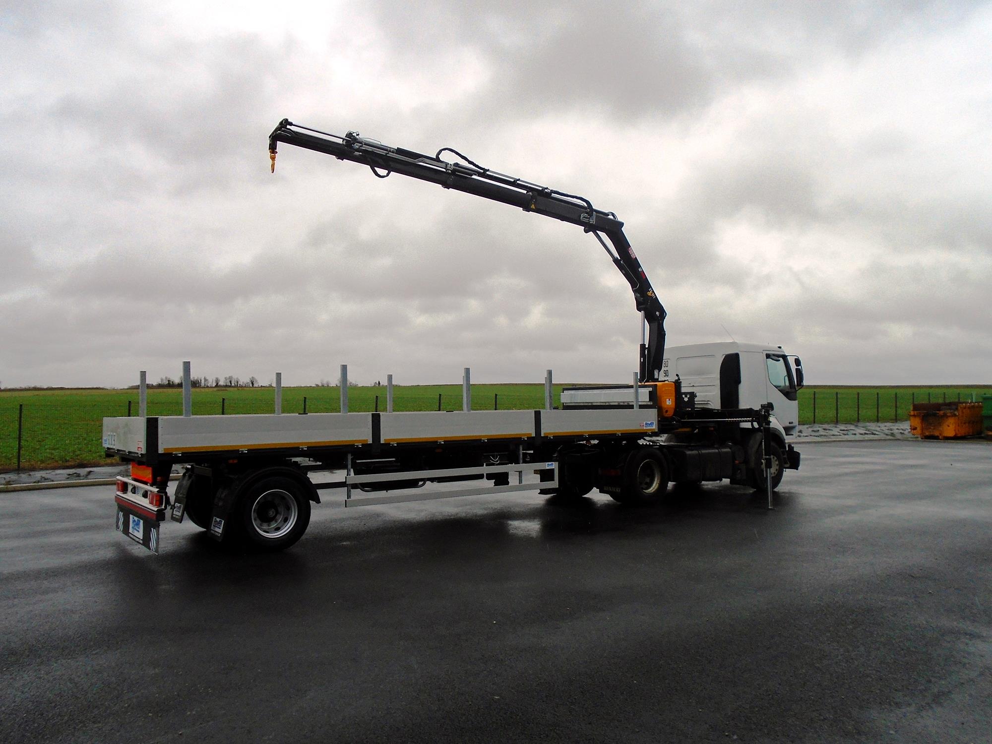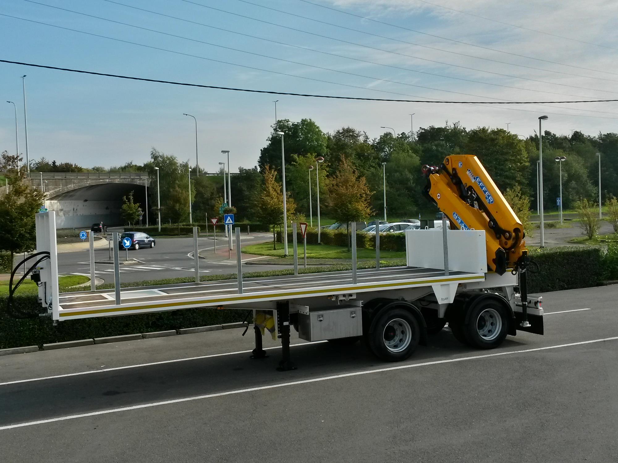 Semi-remorque city avec essieu dirigé prévue pour montage de grue