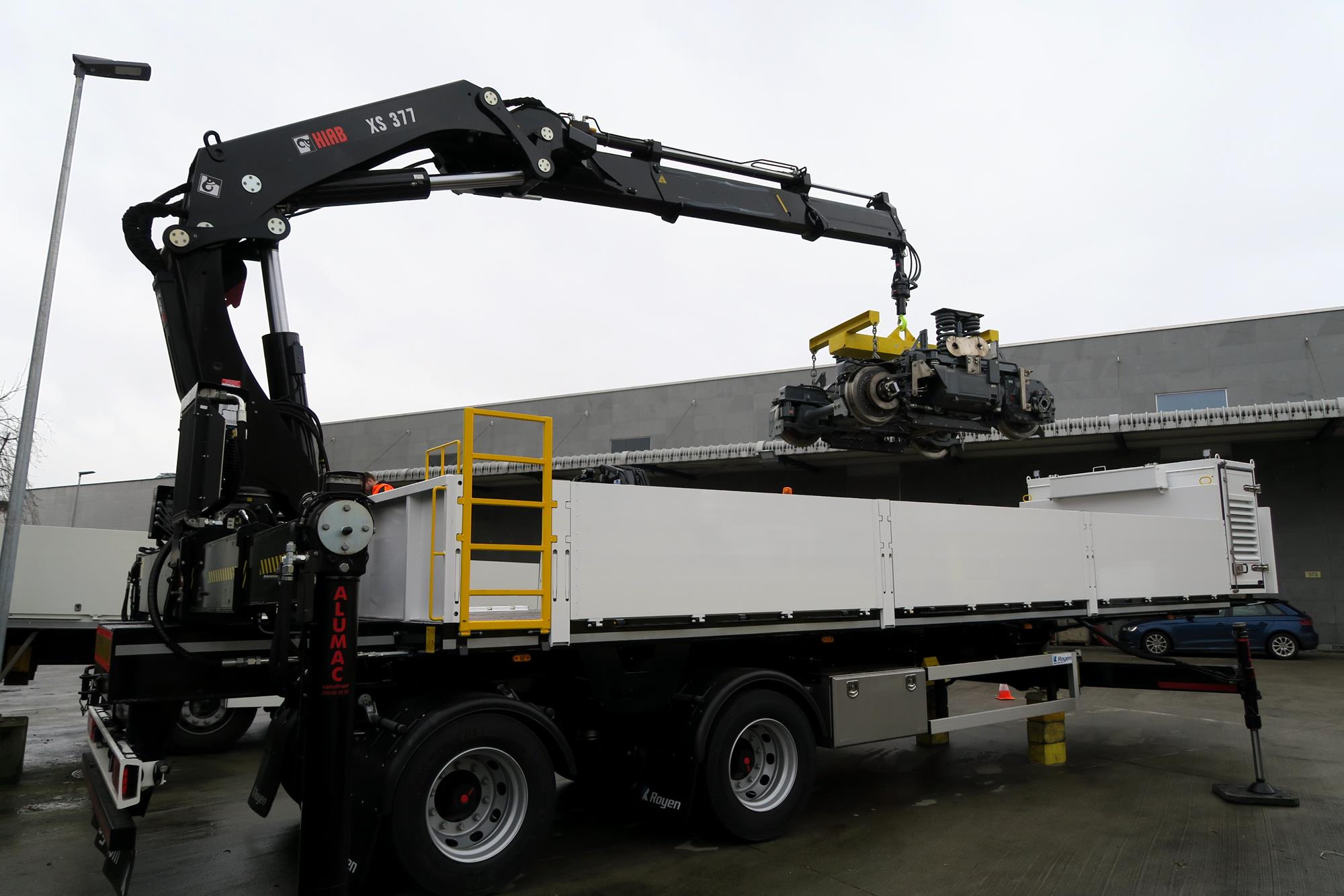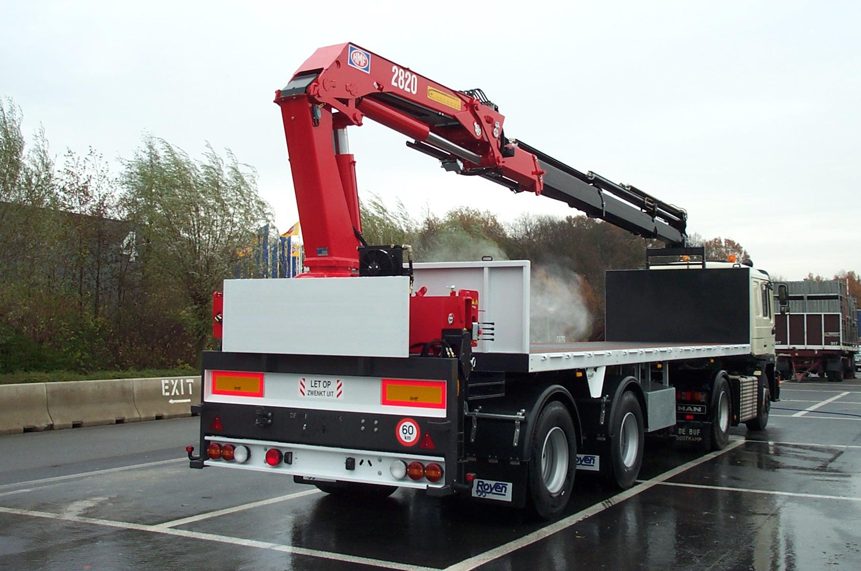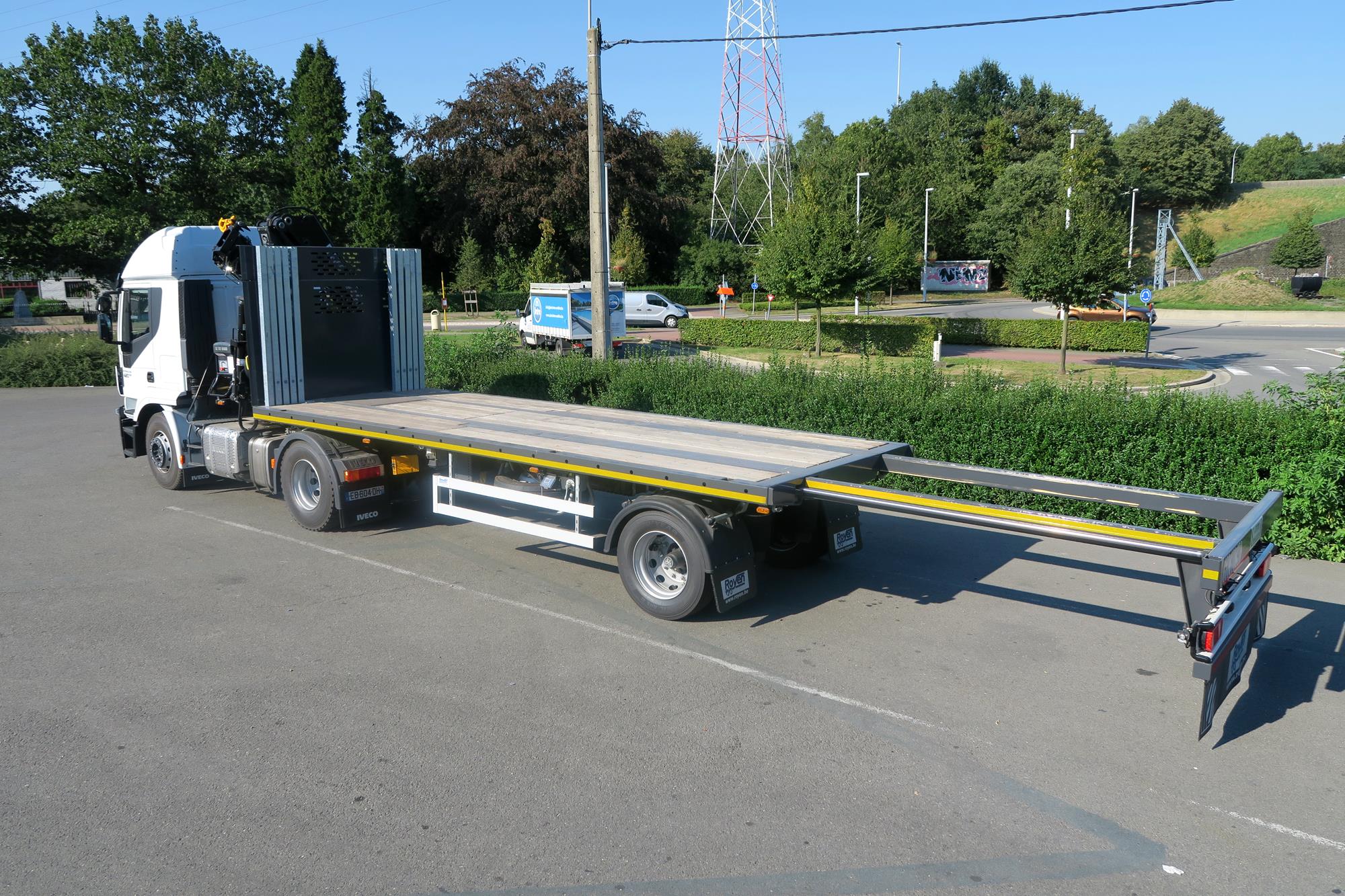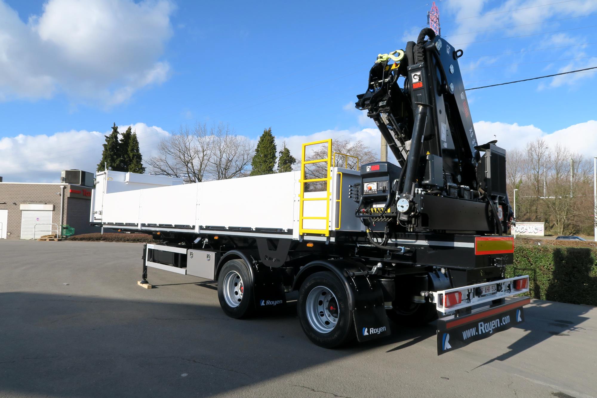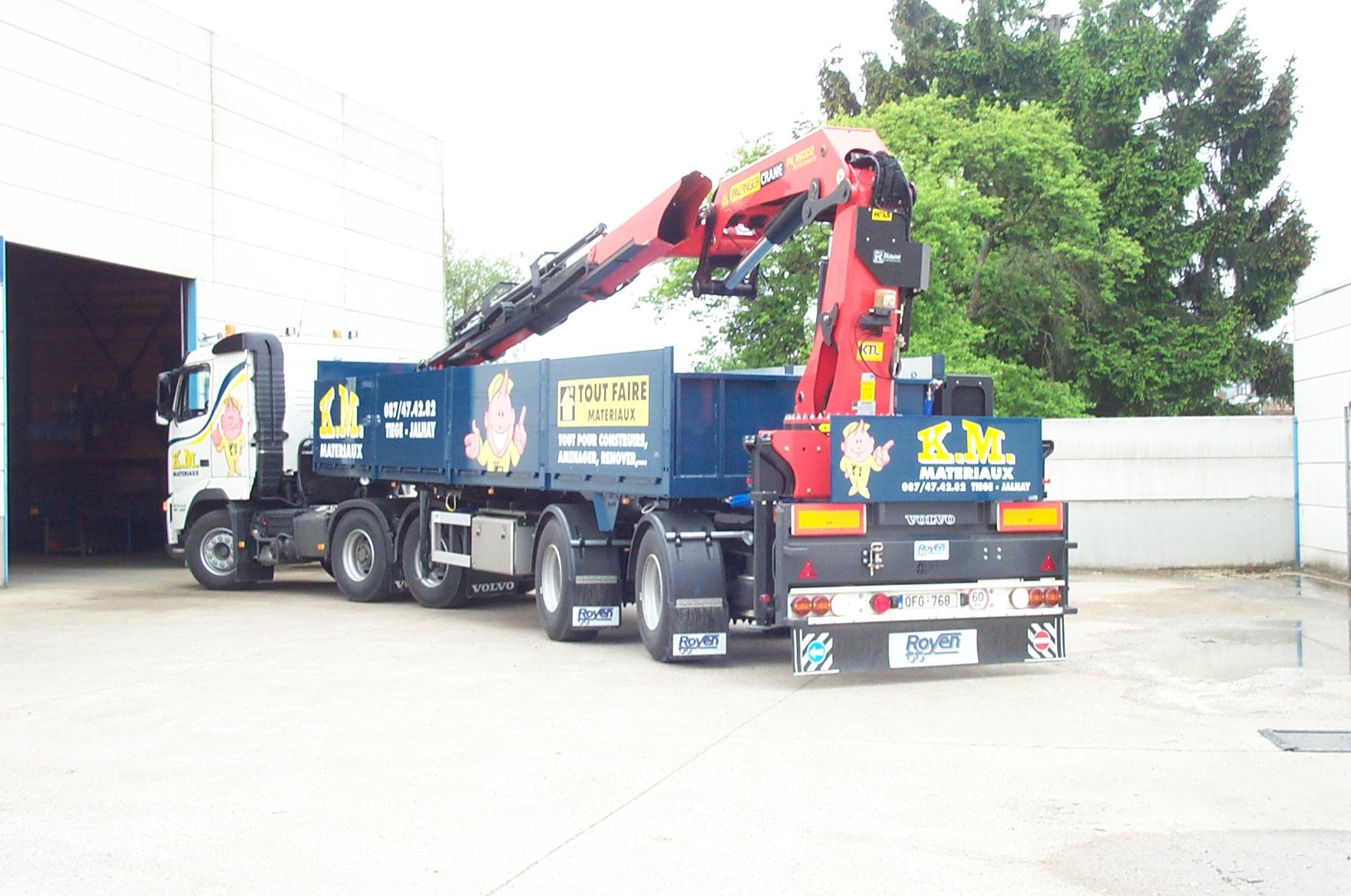 Semi-remorque city avec essieu dirigé prévue pour montage de grue