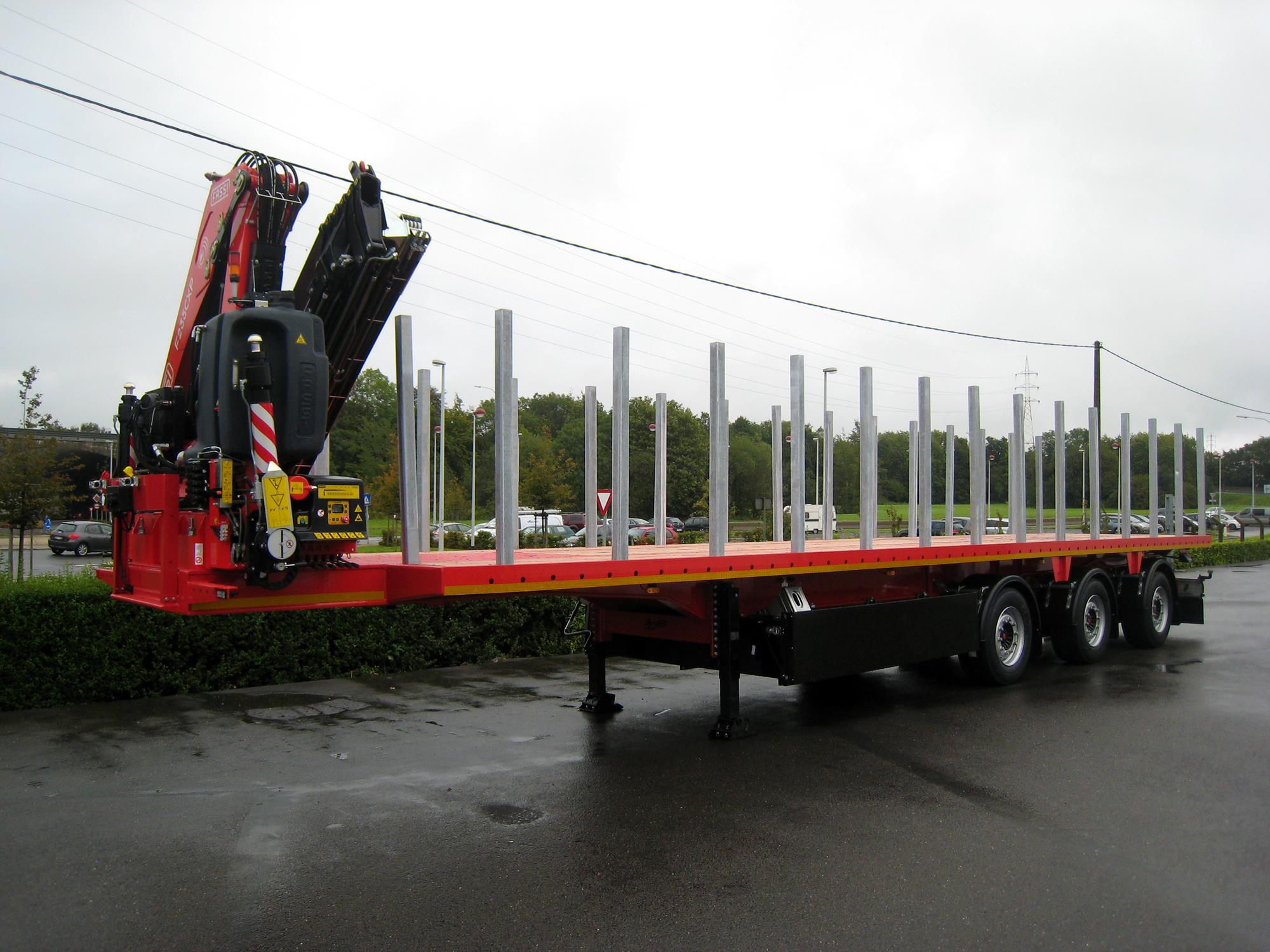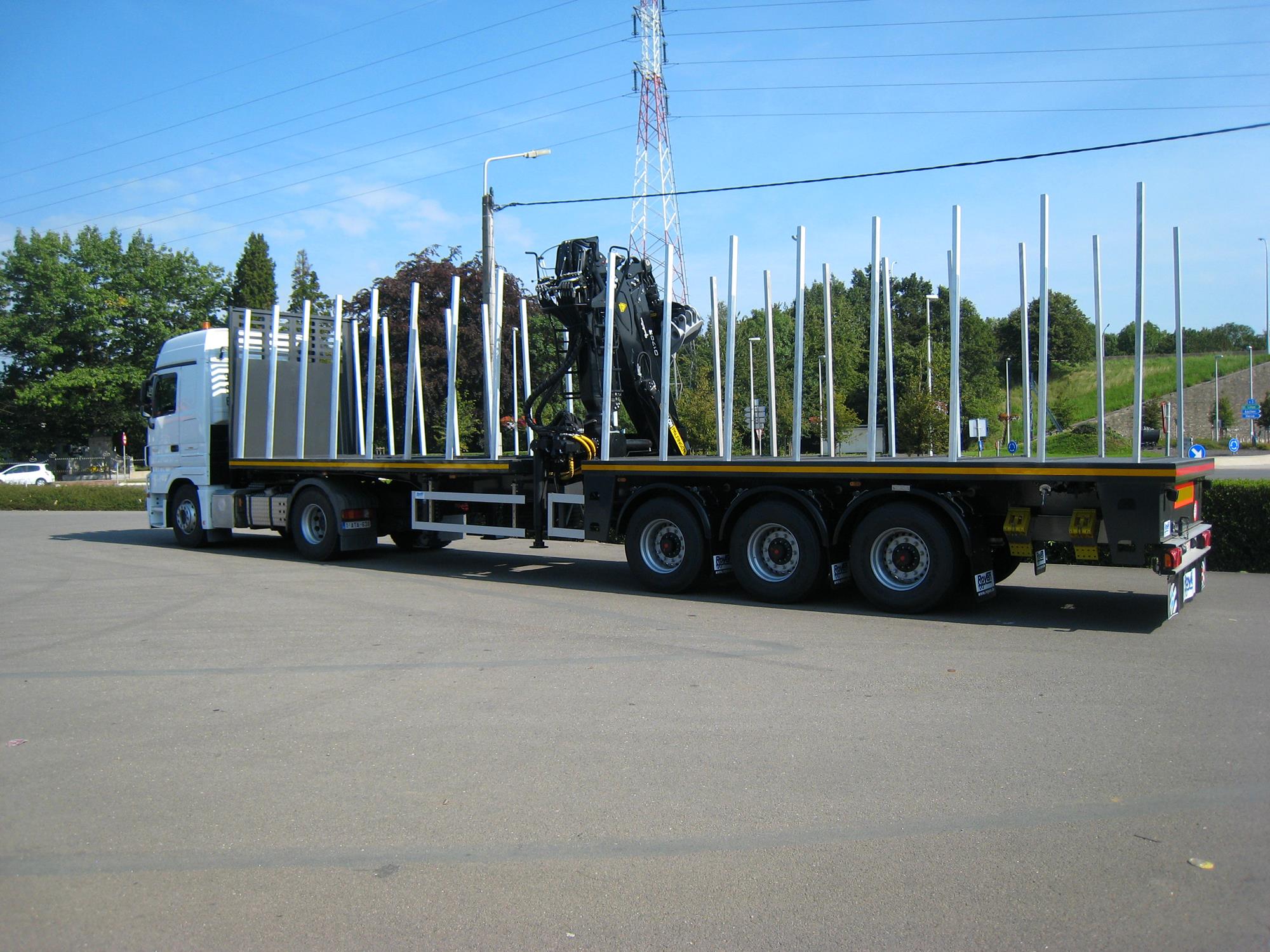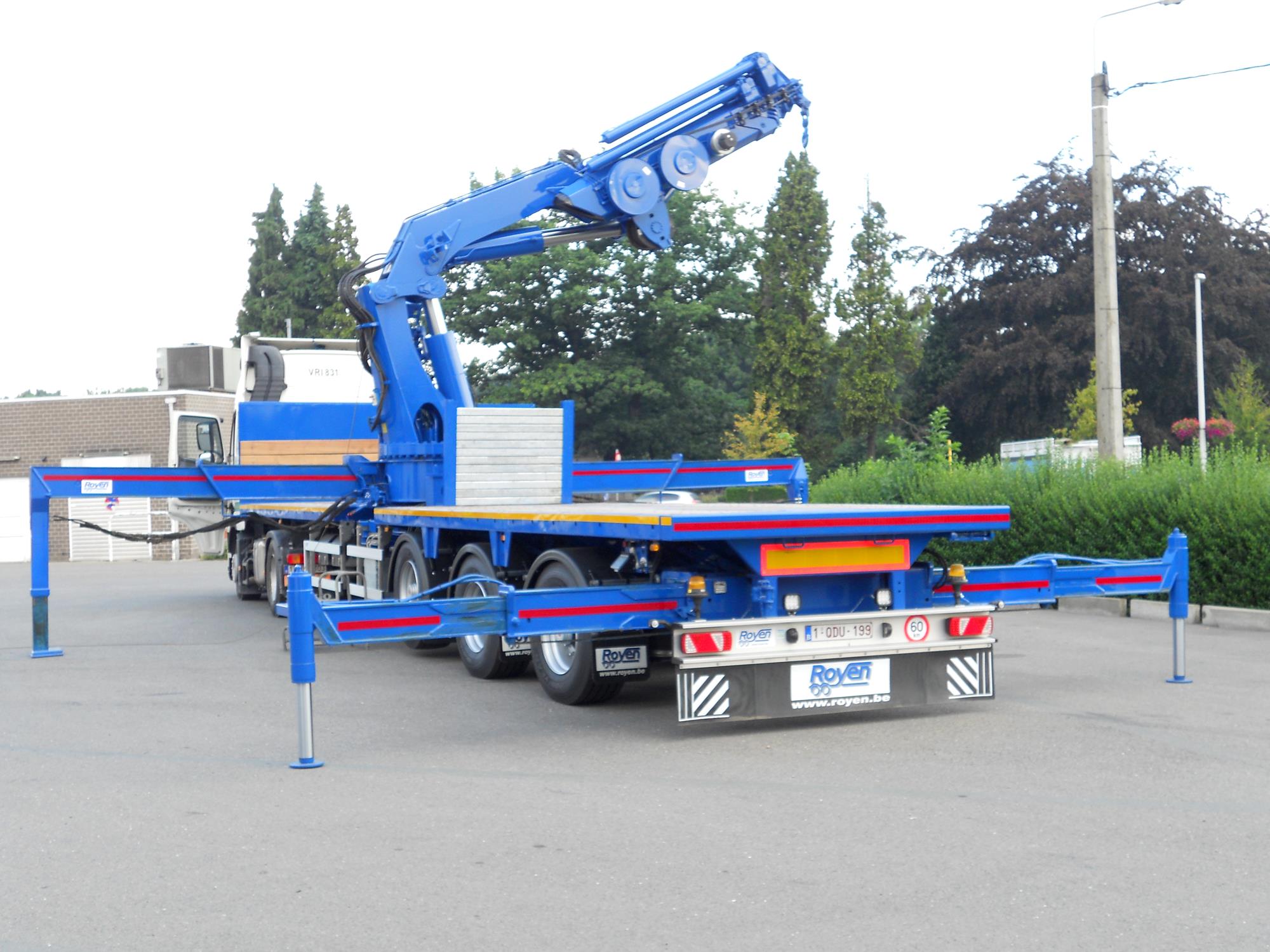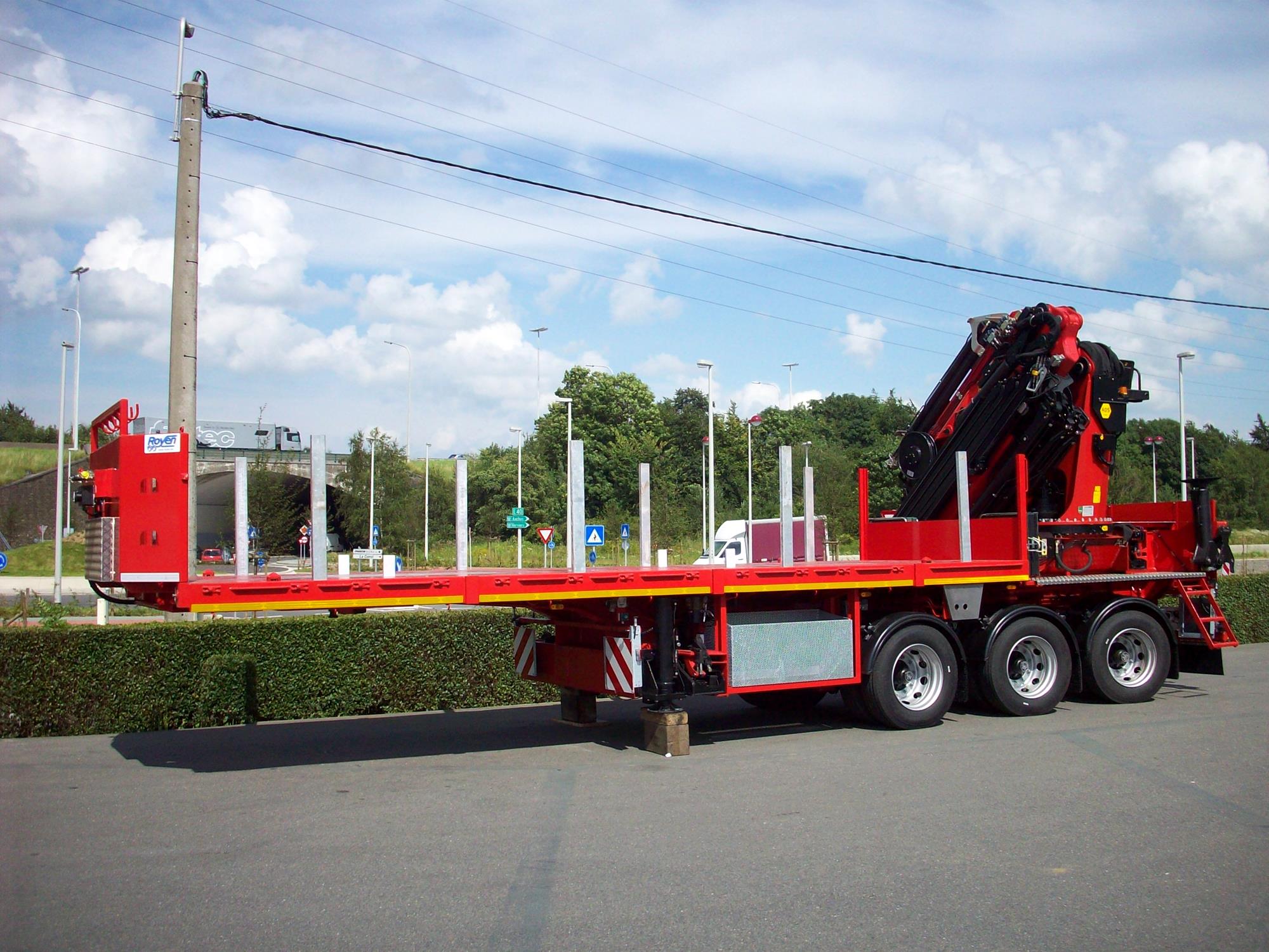 Semi-remorque plateau prévue pour montage de grue avec ou sans essieux dirigés