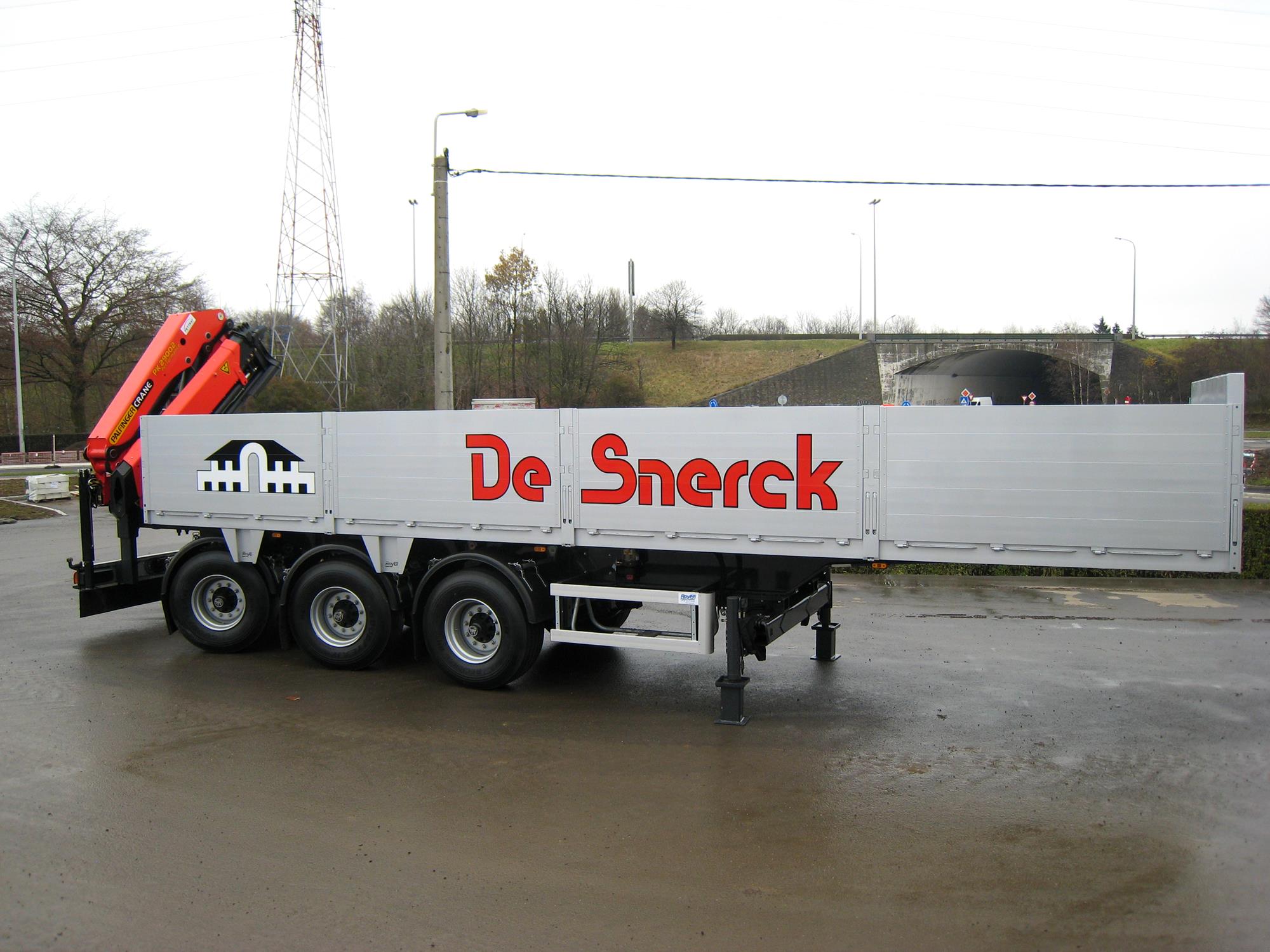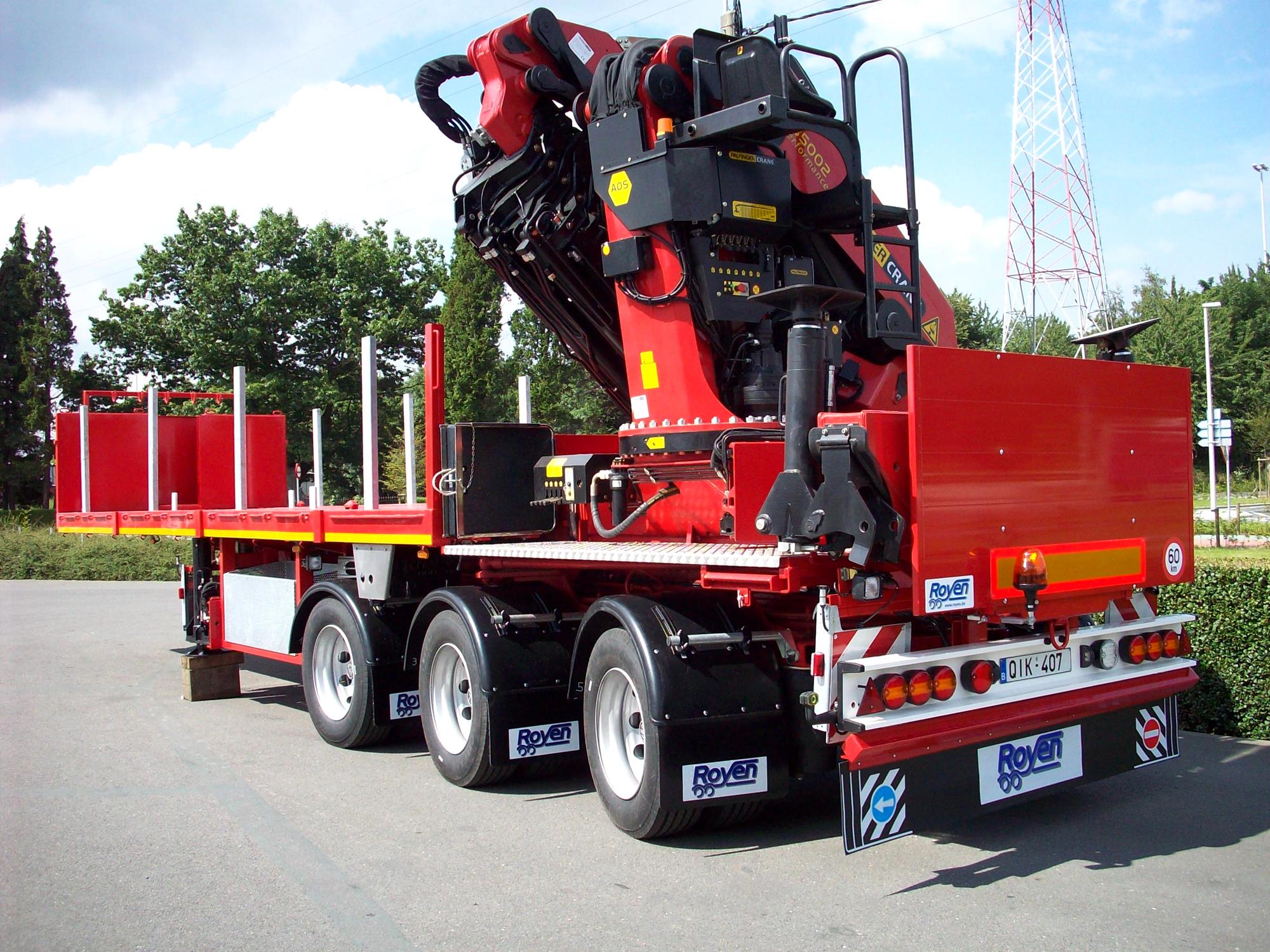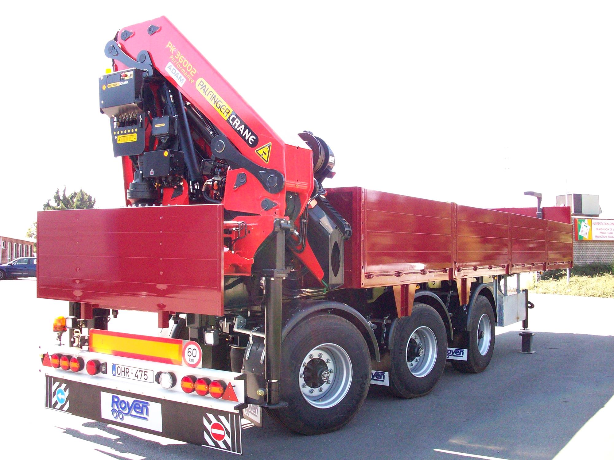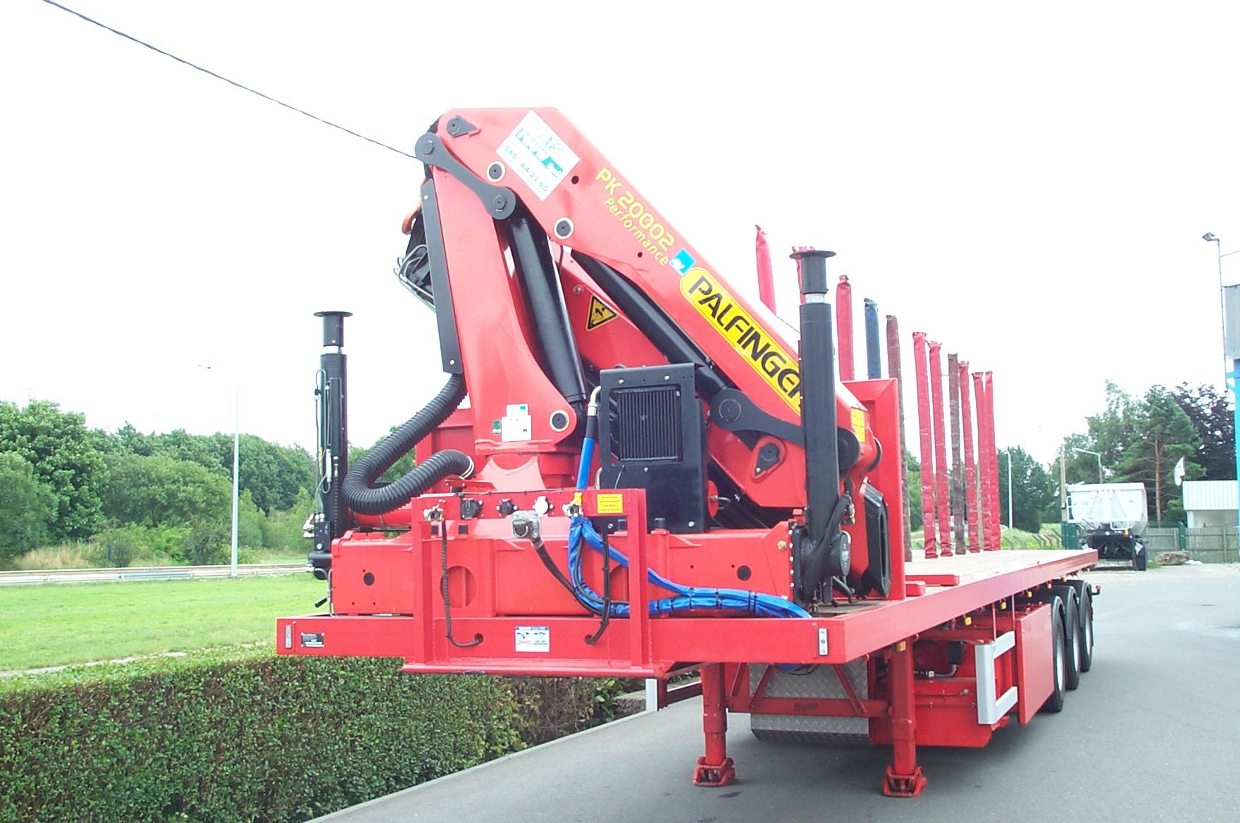 Semi-remorque plateau prévue pour montage de grue avec ou sans essieux dirigés