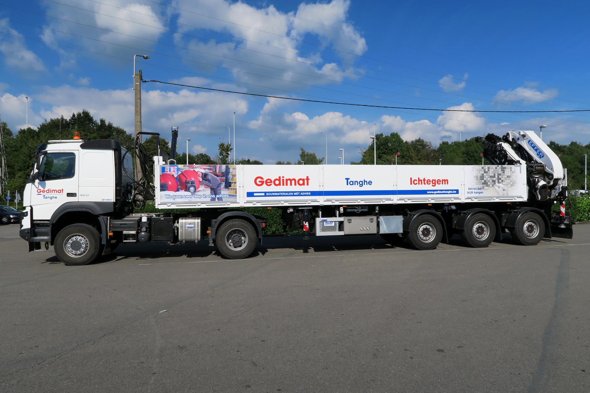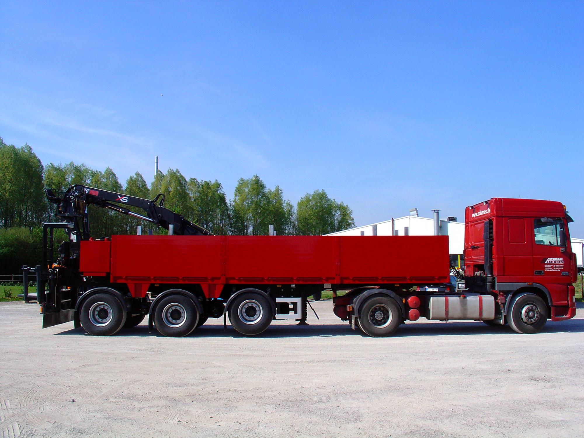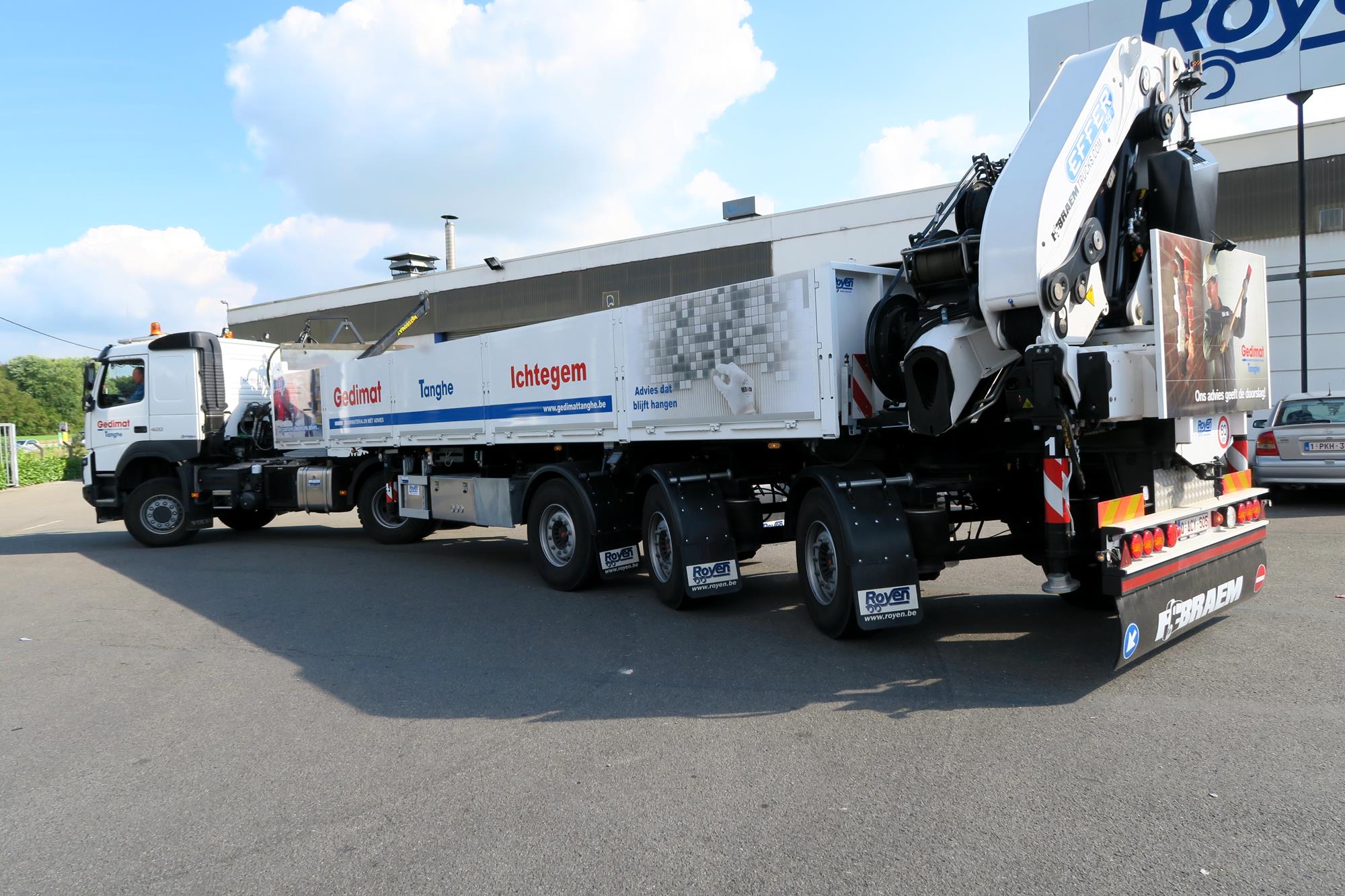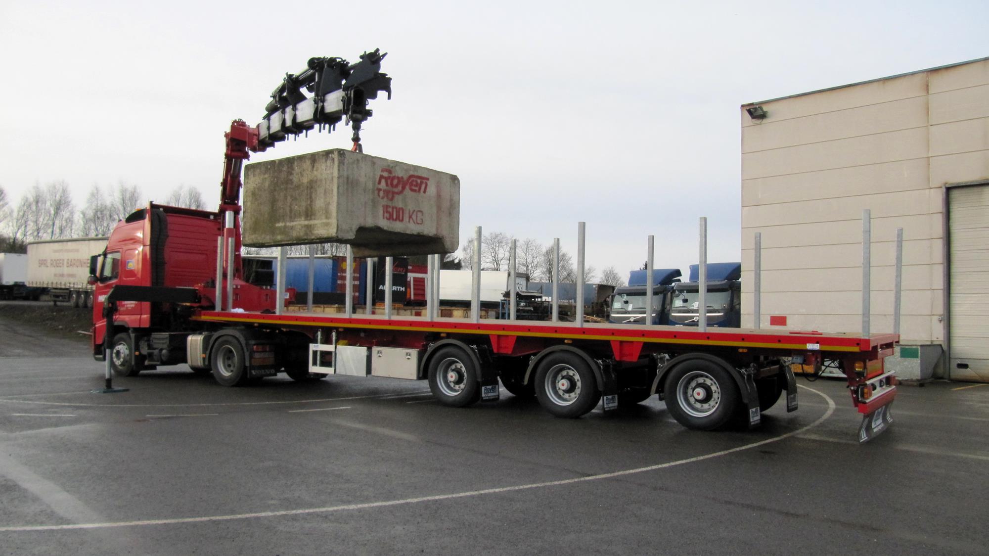 Semi-remorque plateau prévue pour montage de grue avec ou sans essieux dirigés