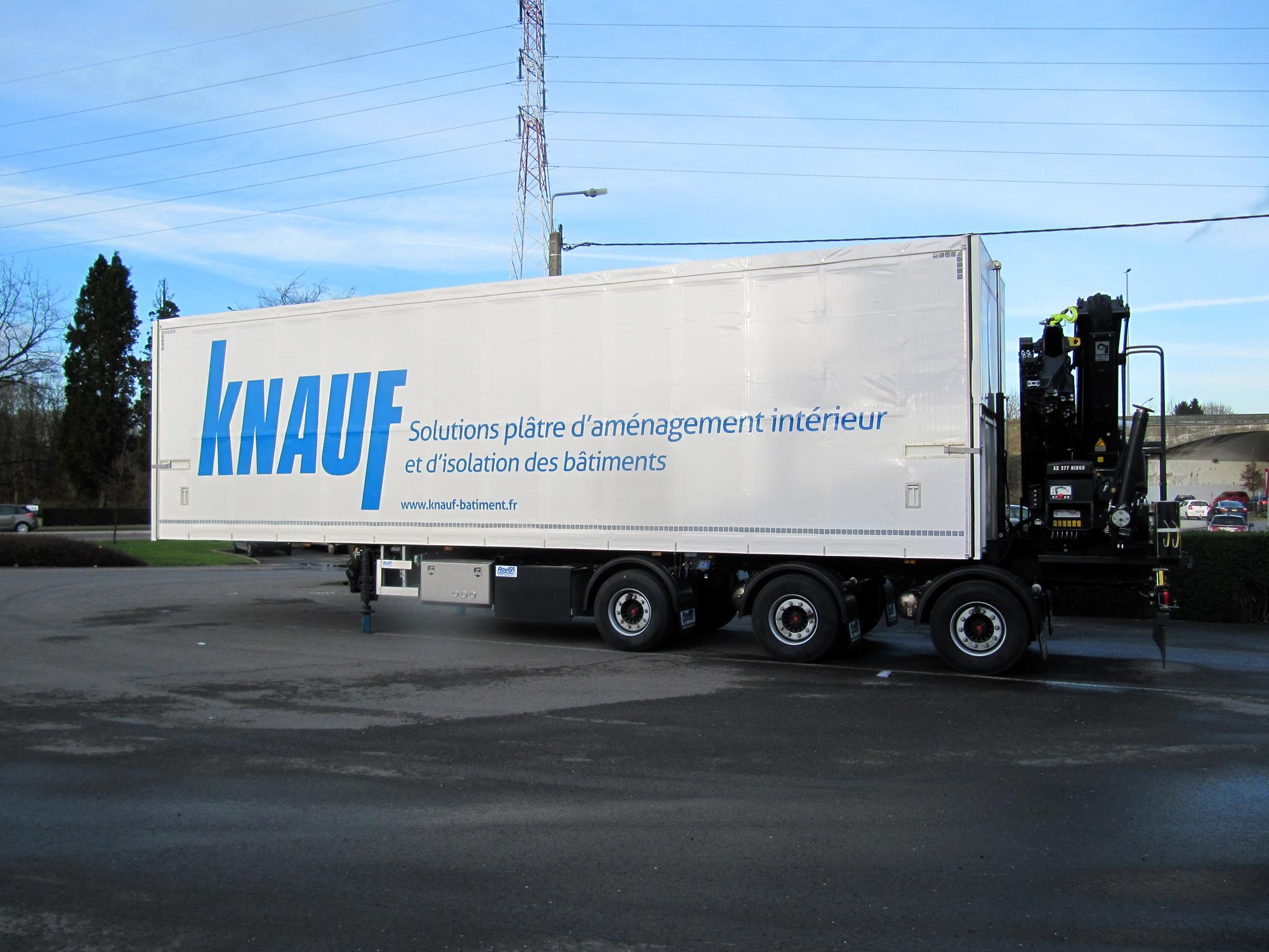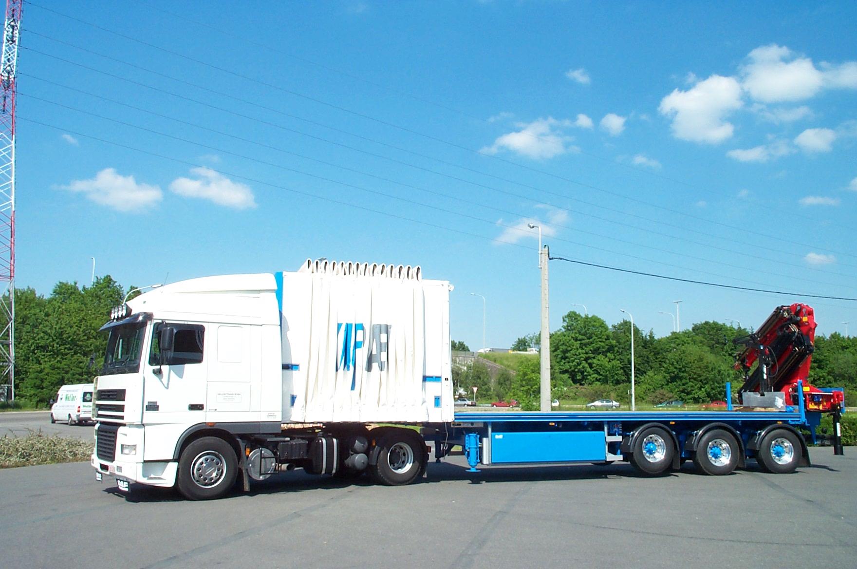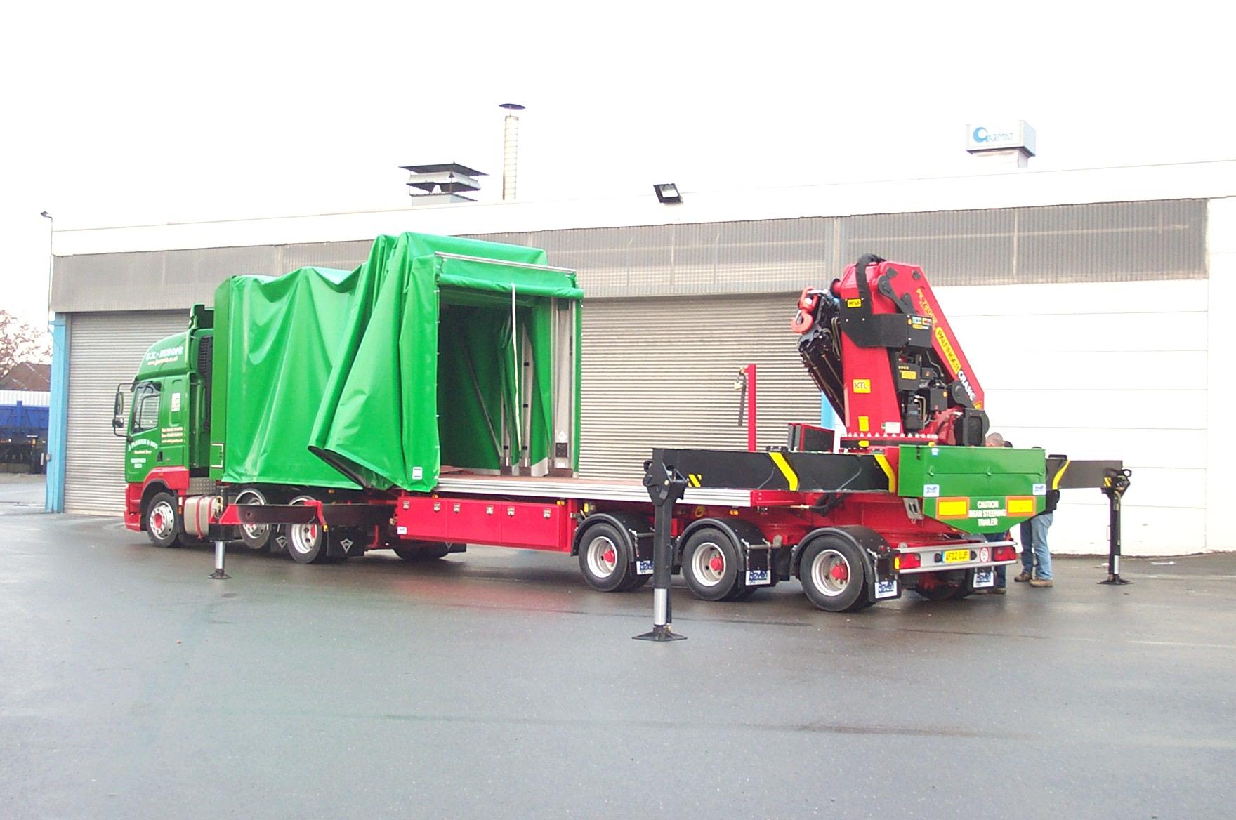 Plateauauflieger für Kranaufbau und FlexiWay Schiebebügel-Planensystem