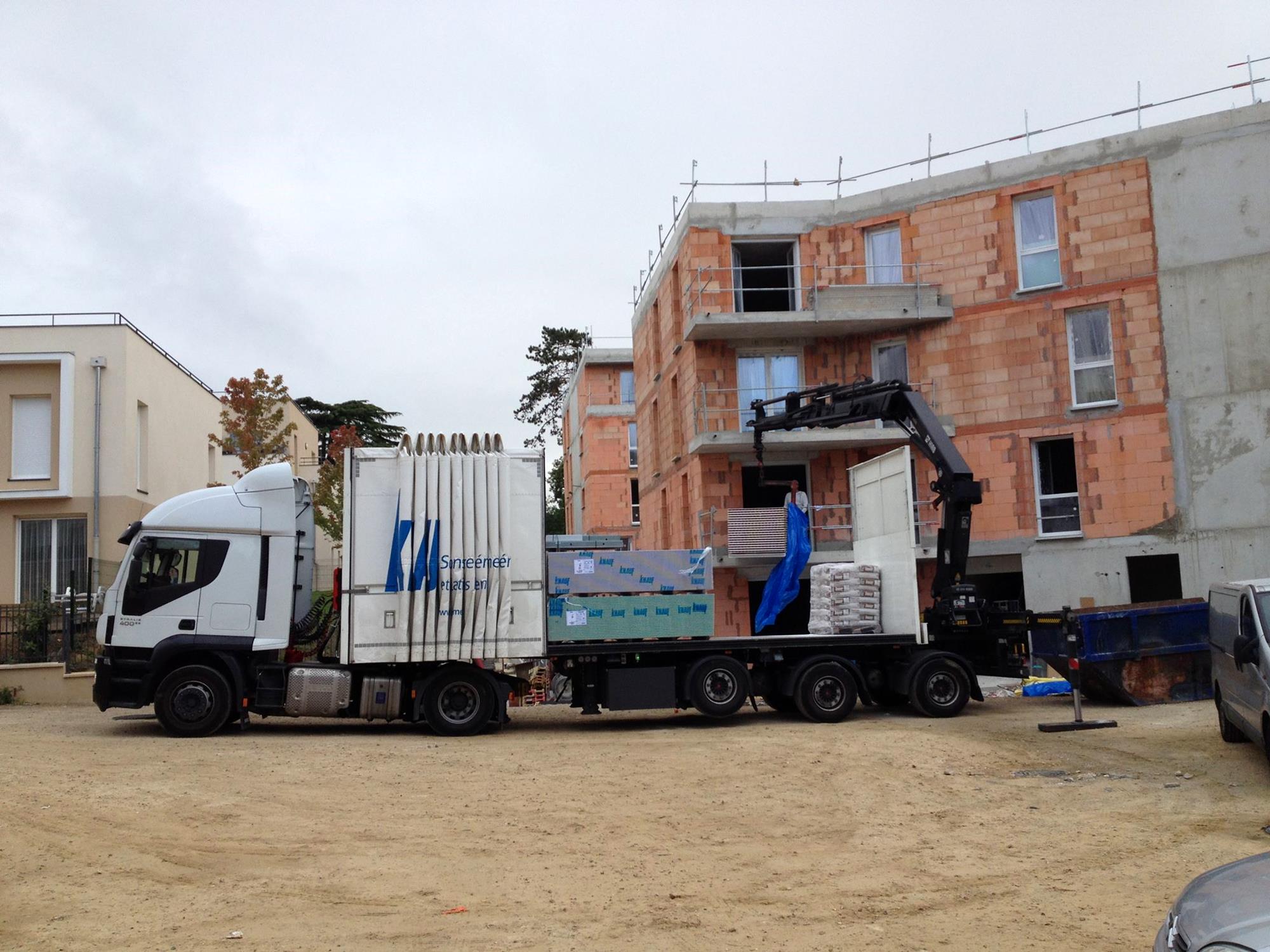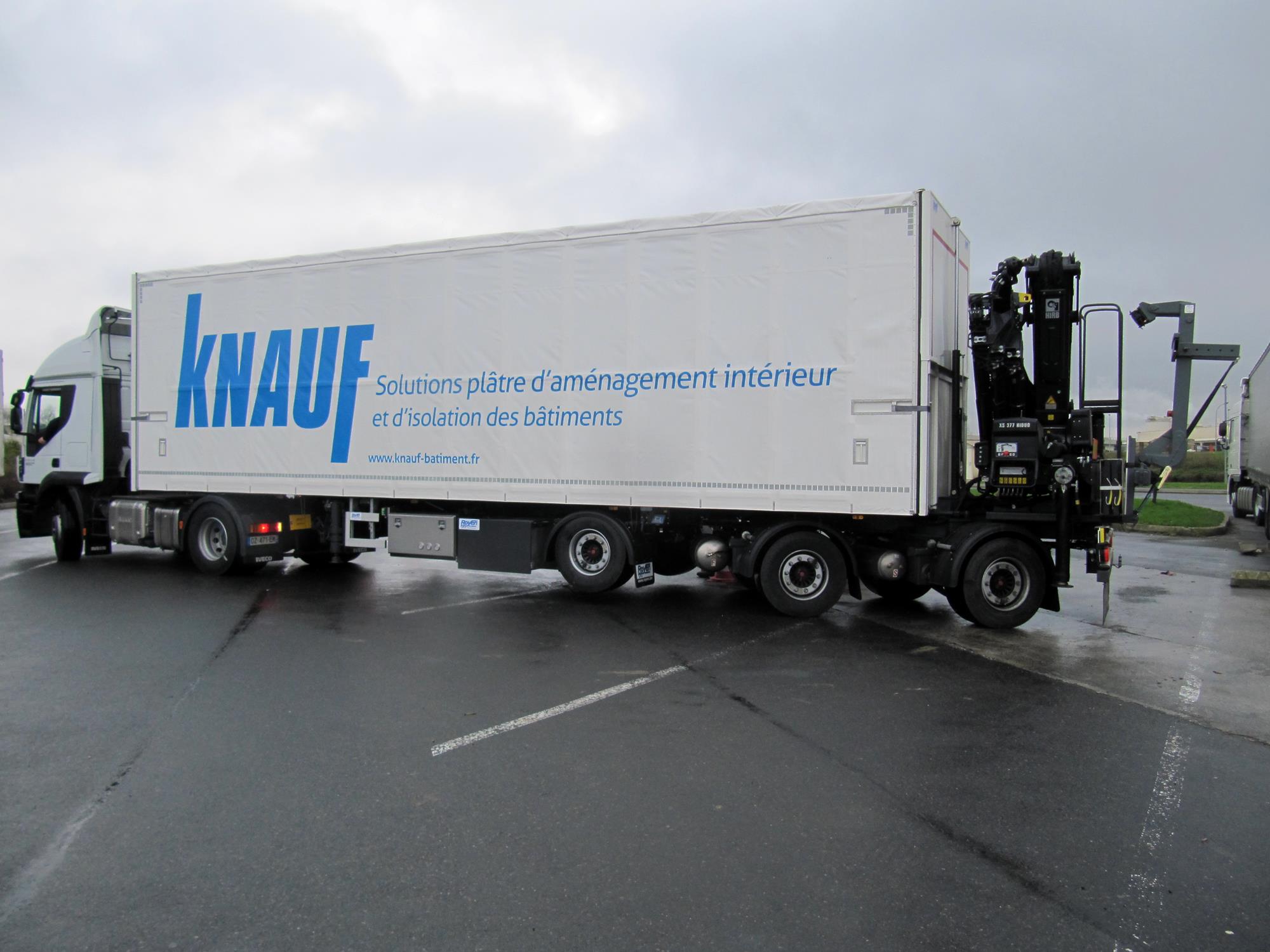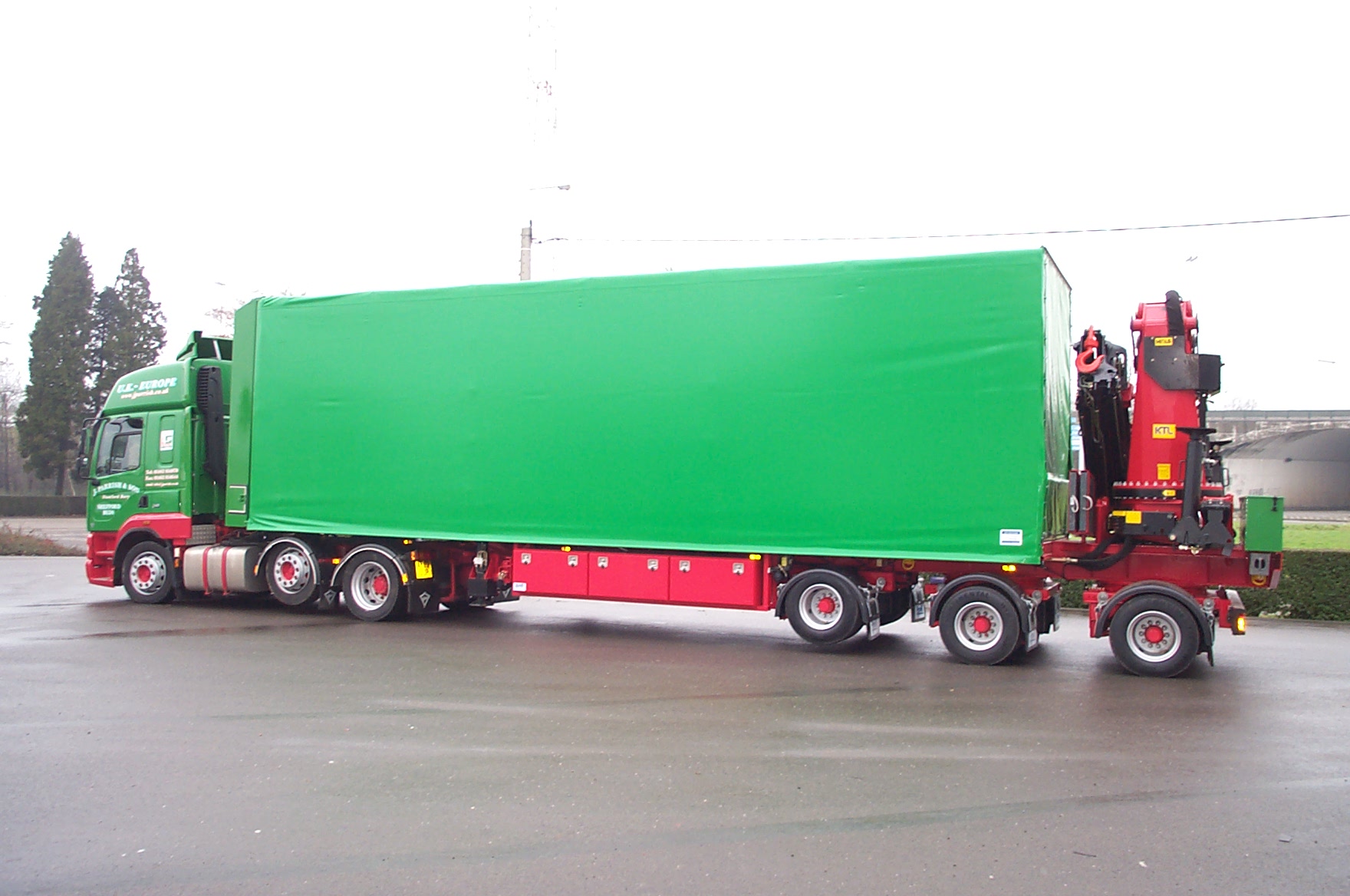 Plateauauflieger für Kranaufbau und FlexiWay Schiebebügel-Planensystem