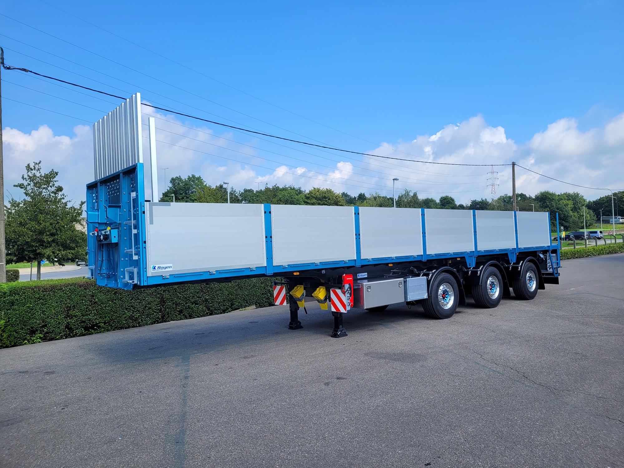 Dit type semi-dieplader roll oplegger bestaat ook in uitschuifbare versie, met in dat geval een hydraulisch gedwongen stuursysteem van Royen.